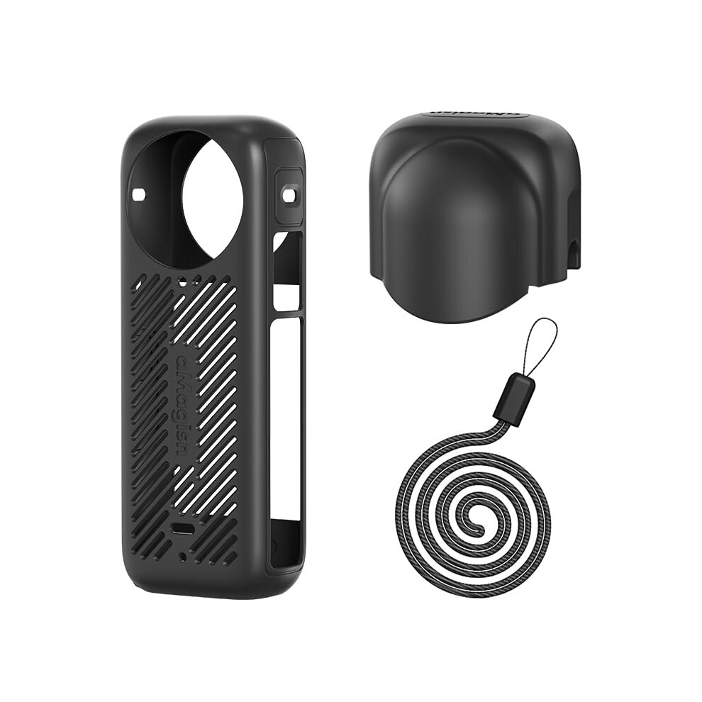 aMagisn Panorama Camera Silicone Protective Case Cover + Silicone Lens Cap with Wrist Strap Shock-Proof Compatible with Insta360 X4 Camera Accessories