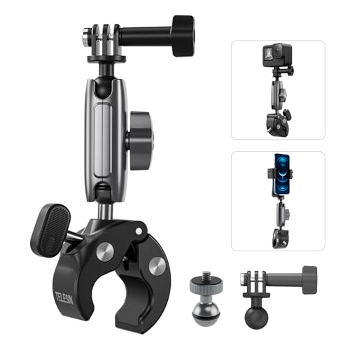 TELESIN Motorcycle Windshield Aluminum Mount Clamp Clip Compatible with Hero 13 12 11 10 9 Insta360 X5 X4 X3 Ace Pro Osmo Action 5 Pro 4 3 2 Motorcycle Accessories Action Camera Accessories