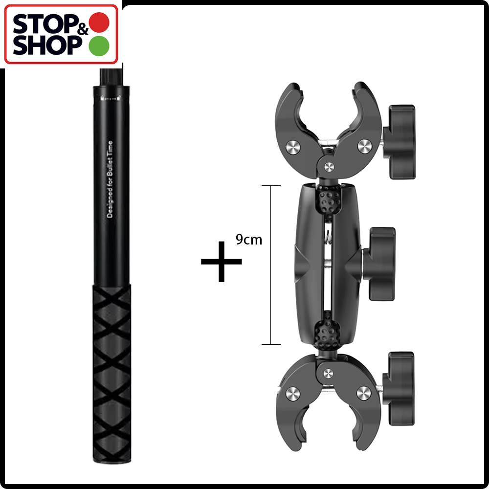 PULUZ Motorcycle Bike Handlebar Mount Kit with Double Clamp & 1.5M Invisible Selfie Stick Telescopic for Insta360 X4 X3 X2 GO 3 One RS Action Camera Handlebar Holder Bundle for Riding Records