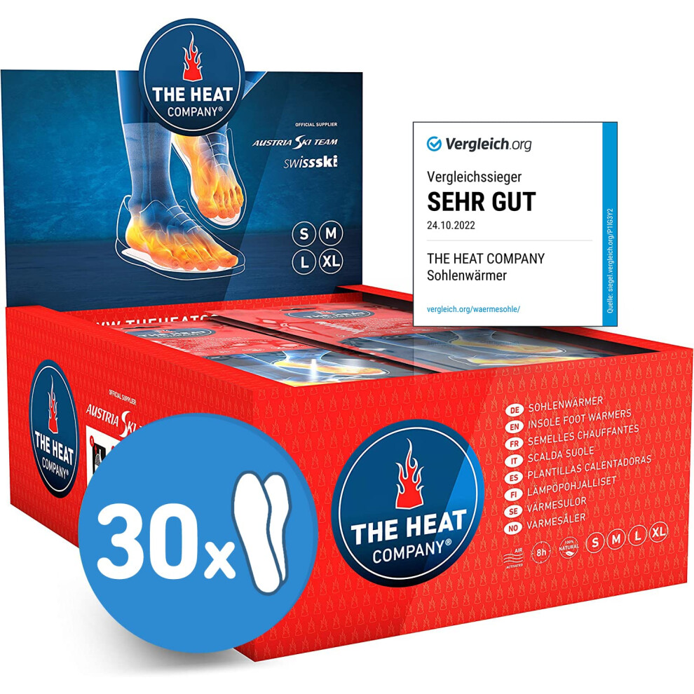 THE HEAT COMPANY Insole Foot Warmers - 30 Pairs - EXTRA WARM - 8 Hours of Warmth - Instant Heat - Air Activated - Purely Natural - Medium Size: 7.5-9