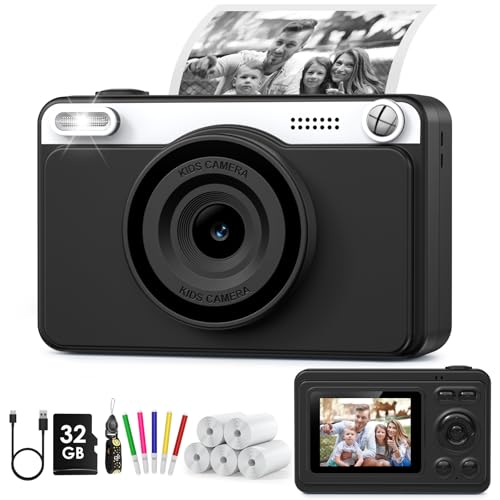 HiMont Kids Camera Instant Print, 1080P Instant Print Camera for Kids with 32GB Card & 3 Rolls Paper, Selfie Digital Camara, Funny Toys Gifts for Boys & Girls Age 3-12 (Black)
