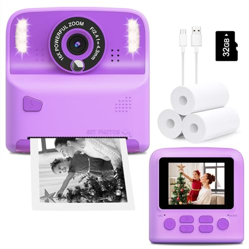 Kids Camera Instant Print - 1080P HD Video & Instant Camera for Kids with 32GB Card & 3 Rolls Paper, Selfie Digital Camara - Christmas Birthday Funny Toys Gifts for 3-12 Years Old Girls & Boys-Purple
