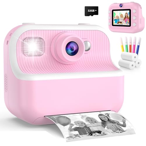 HiMont Kids Camera Instant Print, Digital Camera for Kids with No Ink Print Paper & 32G TF Card, Selfie Video Camera with Color Pens for DIY, Fun Gift for Girls Boys 3-14 Years Old (Pink)