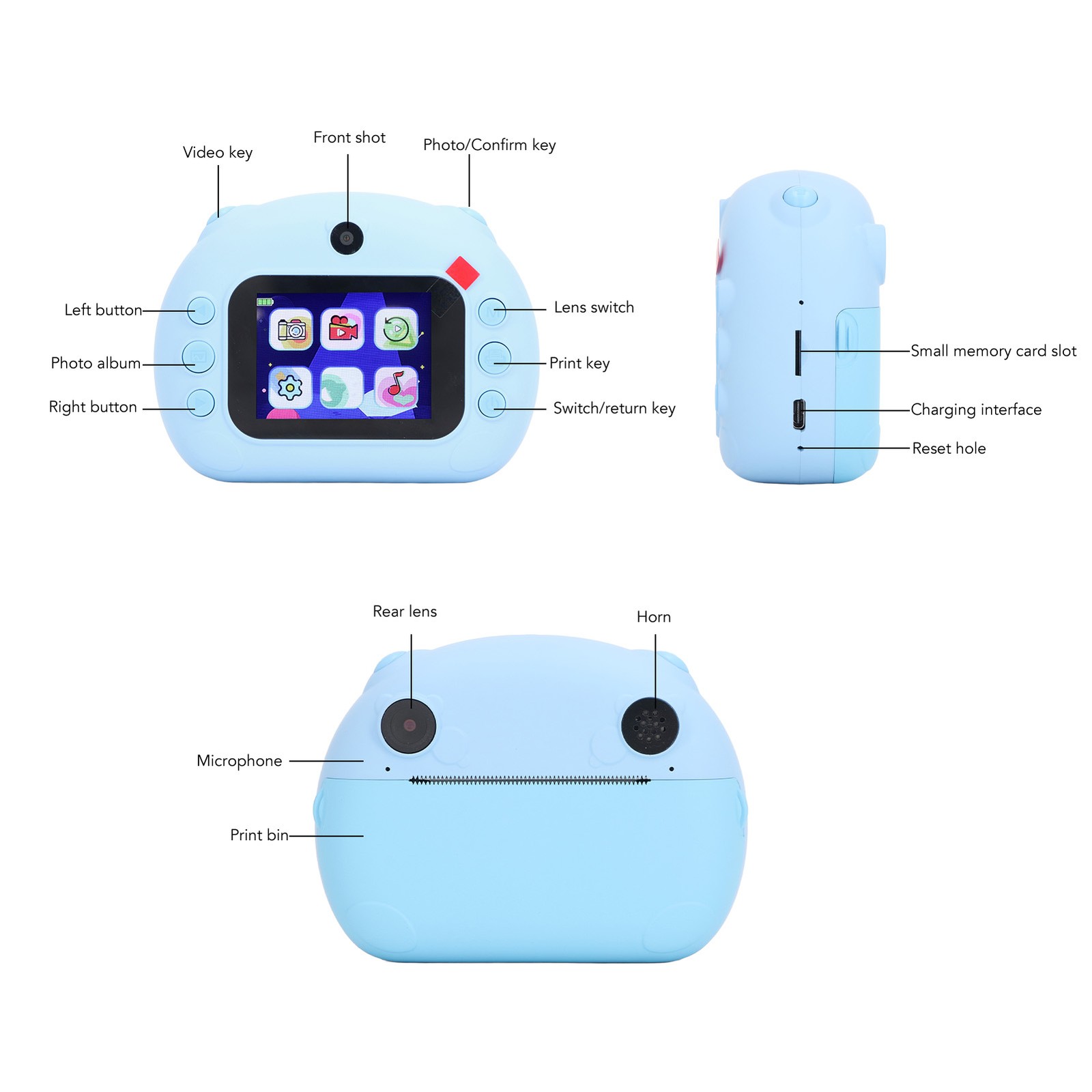 Blue Instant Print Camera For Kids 24MP 1080P 2 Inch HD Screen Dual Lens In OU