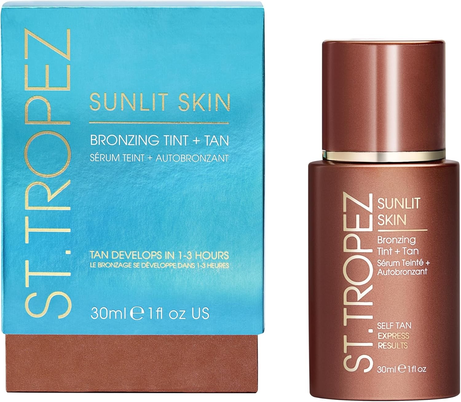St.Tropez Sunlit Skin Self Tan Express 30 ml, Instant Bronzy Glow and Medium Tan in 3 hours, Quick-drying no rinse formula, Suitable for all Skin