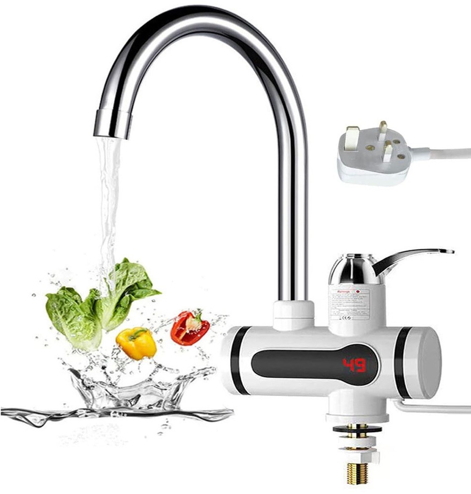Instant Hot Water Tap, Electric Tap UK Plug, 220V 3000W Electric Hot and Cold Mixer Water Faucet with LED Digital Display for Kitchen Bathroom