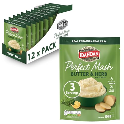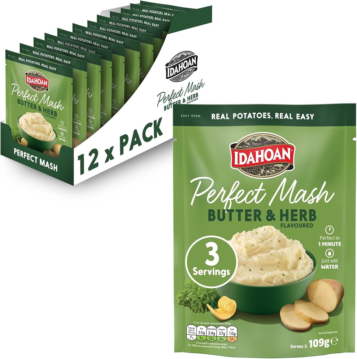 Idahoan Mashed Potato Butter & Herb 109g, Instant Mash Potatoes (Pack of 12)