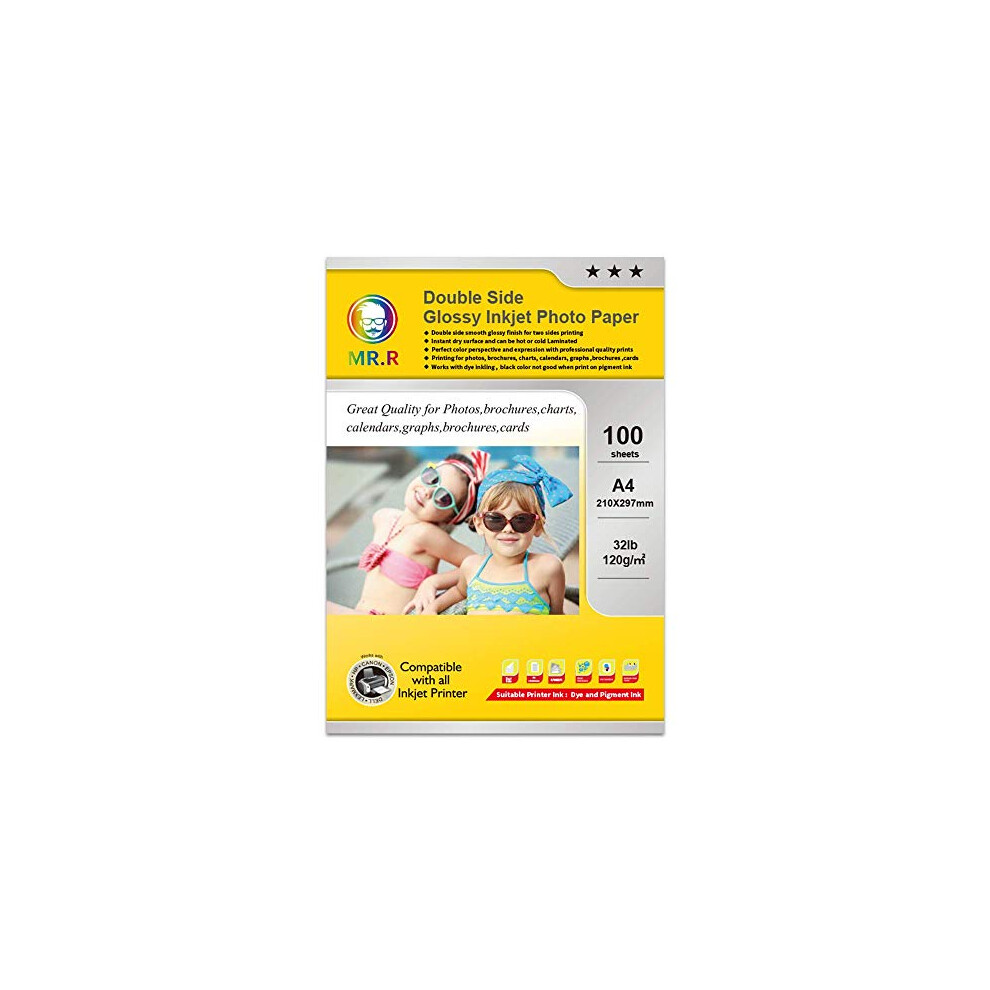 MR.R DH120 Double-Sided Glossy Inkjet Photo Paper, 120gsm, A4, Pack of 100 Sheets – Instant Dry for Inkjet Printers