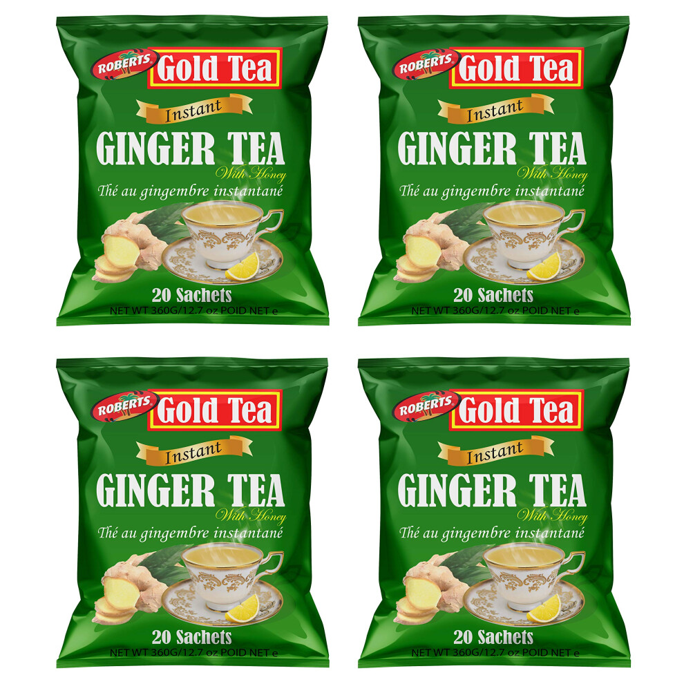 Pack of 4 Gold Tea Instant Ginger Tea with Honey 360g 20 Sachets