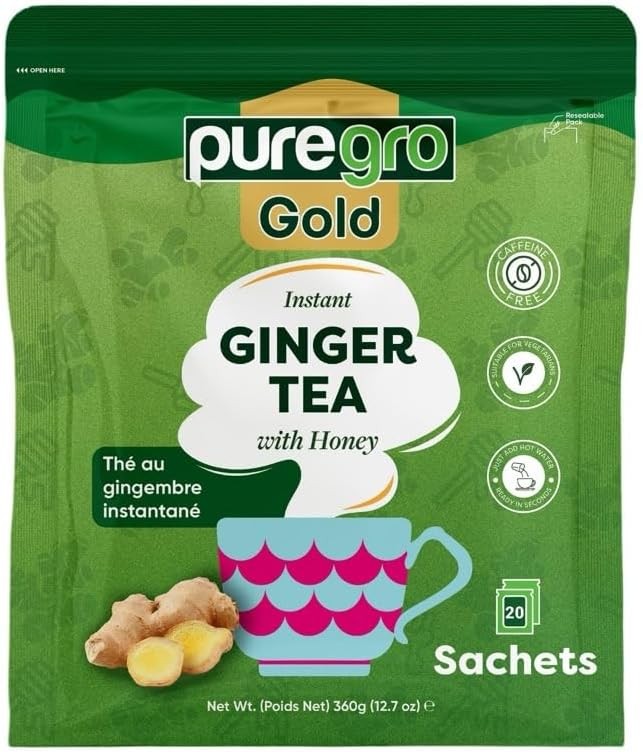 Puregro Gold Instant Ginger Tea with Honey | Ginger Tea | Warming Beverage, Soo