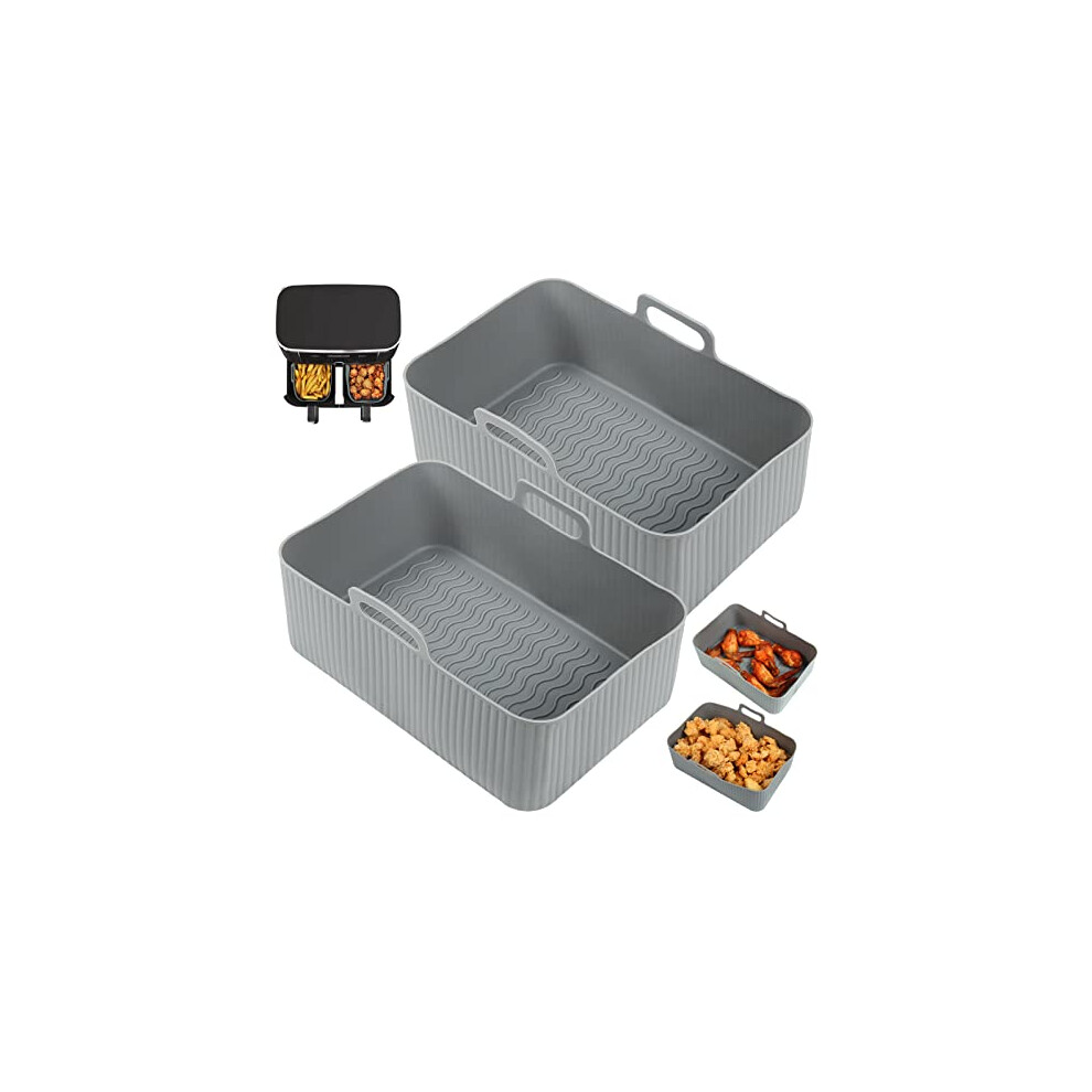 2Pcs Silicone Air Fryer Liners for Ninja Dual AF400UK AF300UK KEPLIN SL400UK Tower, Reusable Airfryer Accessories for EUARY Best Cookwise Instant Vortex MONCOOK 7.6-9.5L