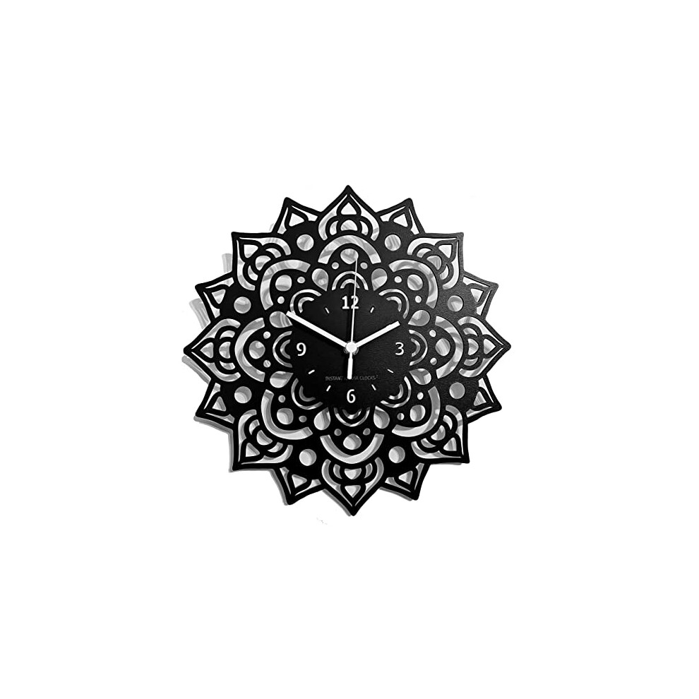 Instant Karma Clocks Wall Clock ? Mandala Flowers Artwork Decorative Motif Chakra Art Gift, HDF Wood Coated Finish Black Color, ?12inch