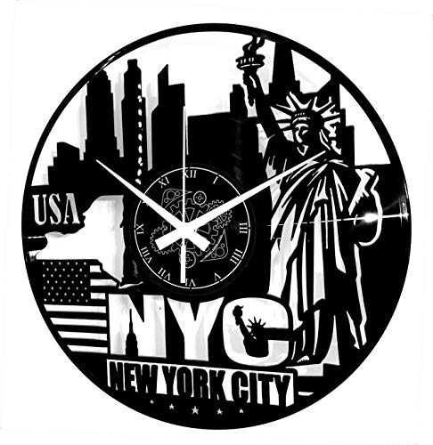 Instant Karma Clocks | New York City Wall Clock | Statue of Liberty and Skyline Design | Silent Quartz Movement | Perfect for Travel Lovers, Urban Spaces and American Decor