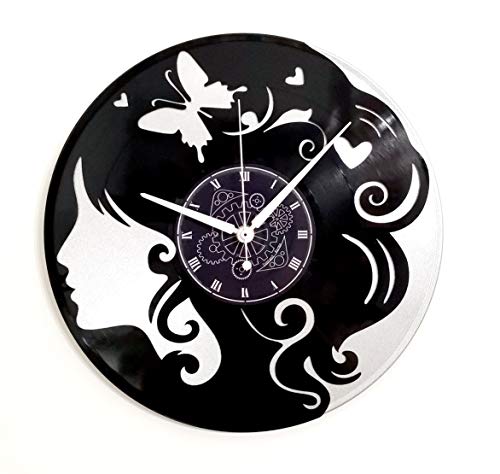 Instant Karma Clocks Instant Karma Double Wall Vinyl Watch-Silver-Vintage Butterfly Gift Idea Woman Face Profile, Silent