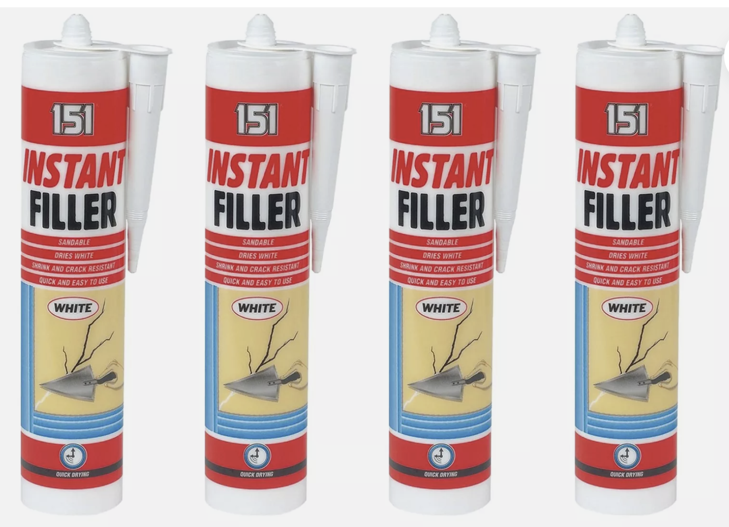 4x Instant Wall Filler Crack Resistant Cartridge Dries White Sandable Gun 280ML