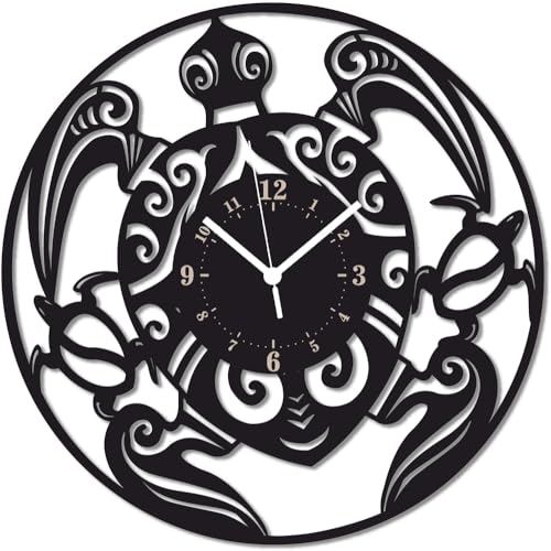 Instant Karma Clocks Wall Clock ➤ Turtle Ocean Sea Wildlife Decorative Beach, HDF Wood, Black, Ø12inch