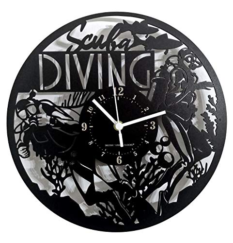 Instant Karma Clocks Wall Clock ➤ Scuba Diving Swimmer Sea, HDF Wood, Black, Ø12inch
