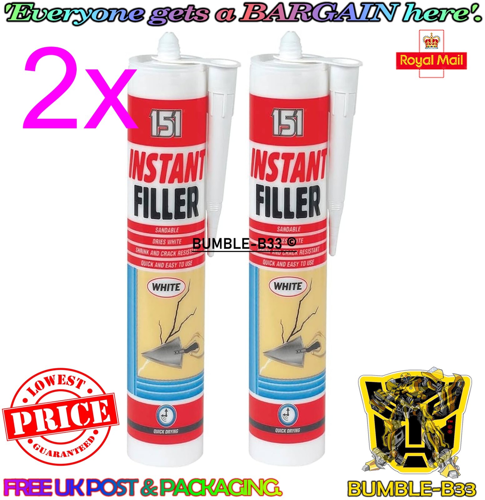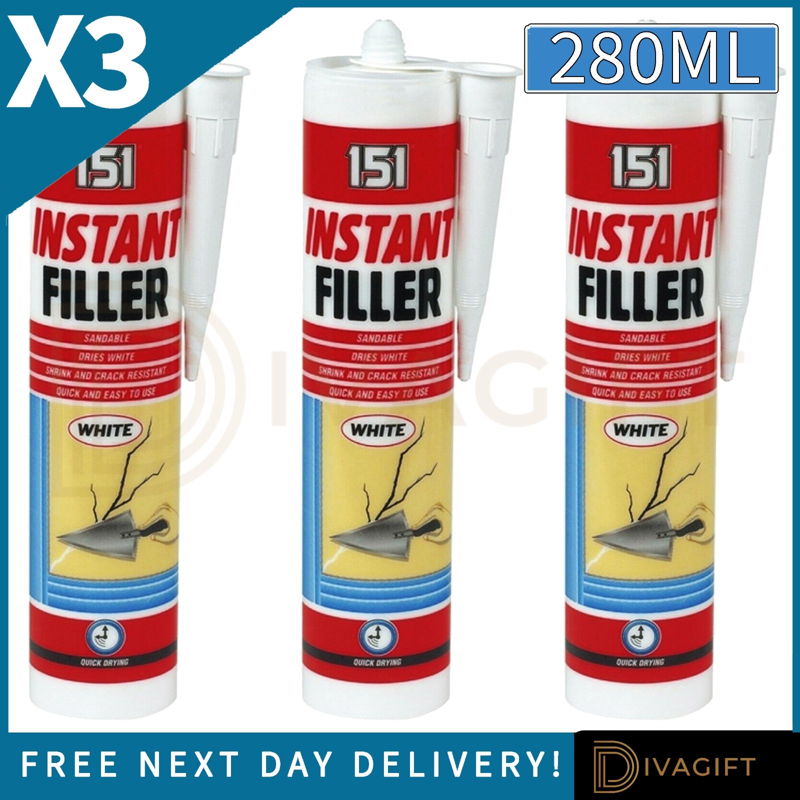 INSTANT WALL FILLER 280ML CRACK RESISTANT CARTRIDGE DRIES WHITE SANDABLE GUN NEW