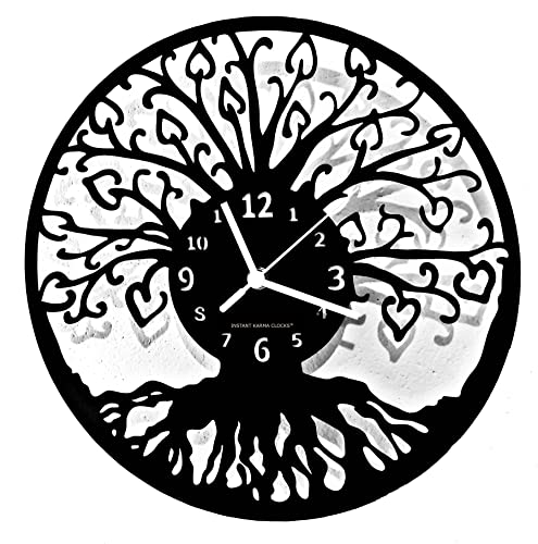 Instant Karma Clocks Wall Clock Tree of Life Cosmology Kitchen Home Living Room Bedroom, Wood, Black, 12 inch/ 30cm