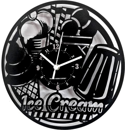 Instant Karma Clocks Wall Clock ➤ Ice Cream Shop, Wood, Black, Ø12inch