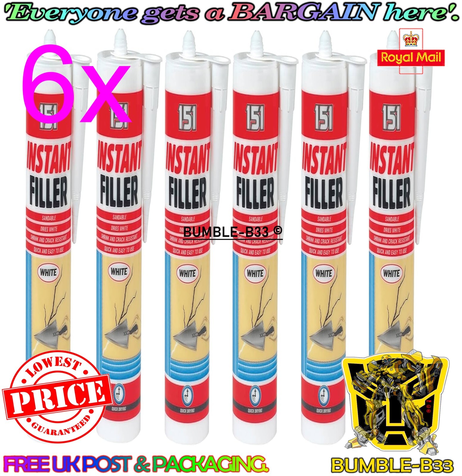 6x 151 Instant Wall Filler Crack Resistant Cartridge Dries White Sandable
