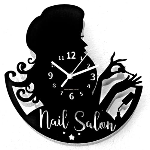 Instant Karma Clocks Wall Clock Make Up Salon Beauty Beautician Shop Manicure Nail Polish, Black Wood, 12 inch/ 30cm