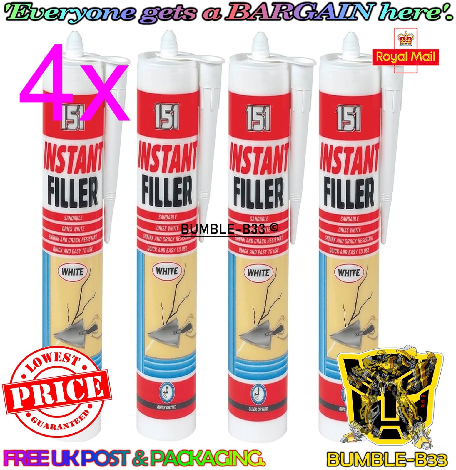 4x 151 Instant Wall Filler Crack Resistant Cartridge Dries White Sandable