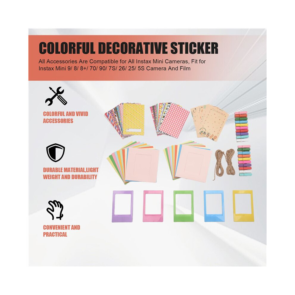 Yardenfun Instant Camera Accessories 6-in- with Mini Frames, Photo Album, Film Stickers, and Hanging Display Clips Compatible with Instax Mini 9/8/8 for Instant Camera Film and Picture