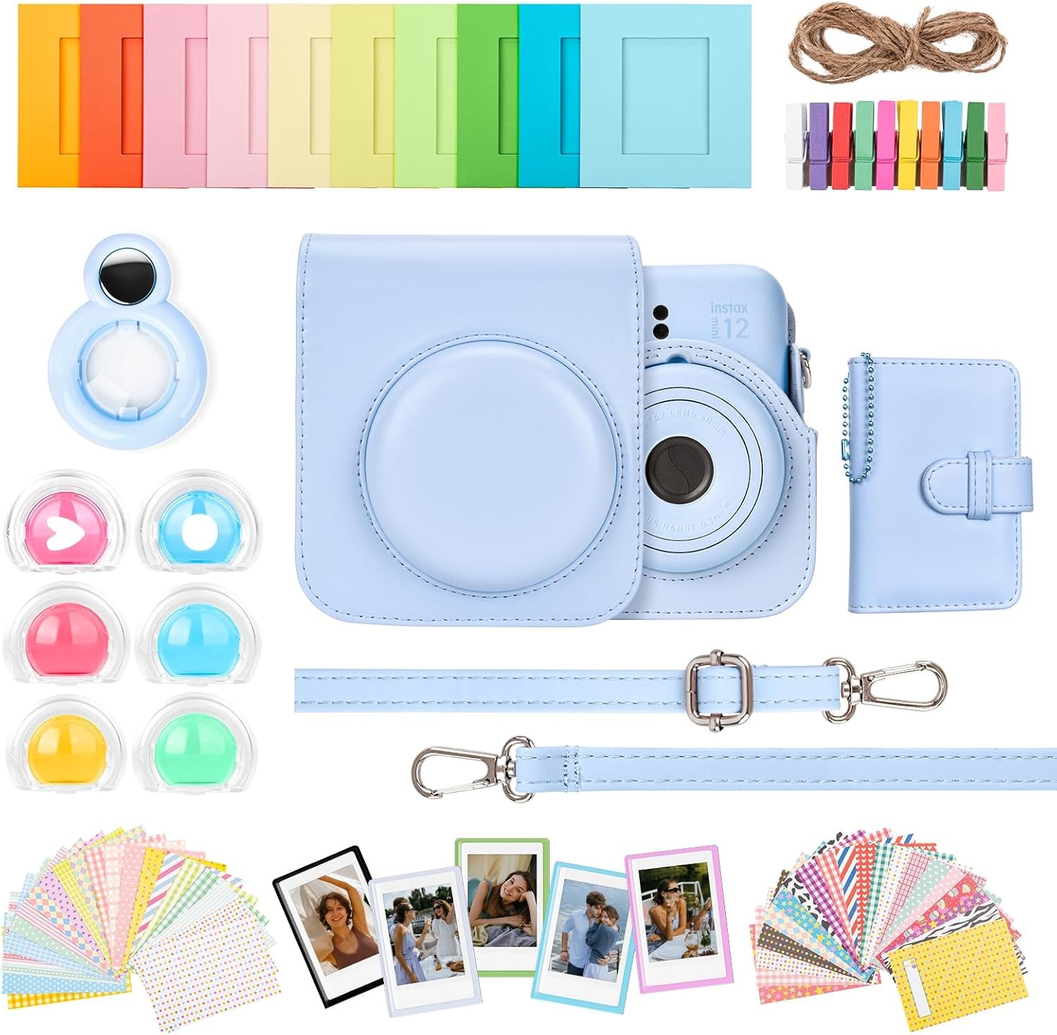 KIKIGOAL Instant Mini 12 Accessories Compatible with Instax Mini 12,Includes Camera Case/Photo Album/Filters/Wall Hanging Frames/Stickers (Blue)