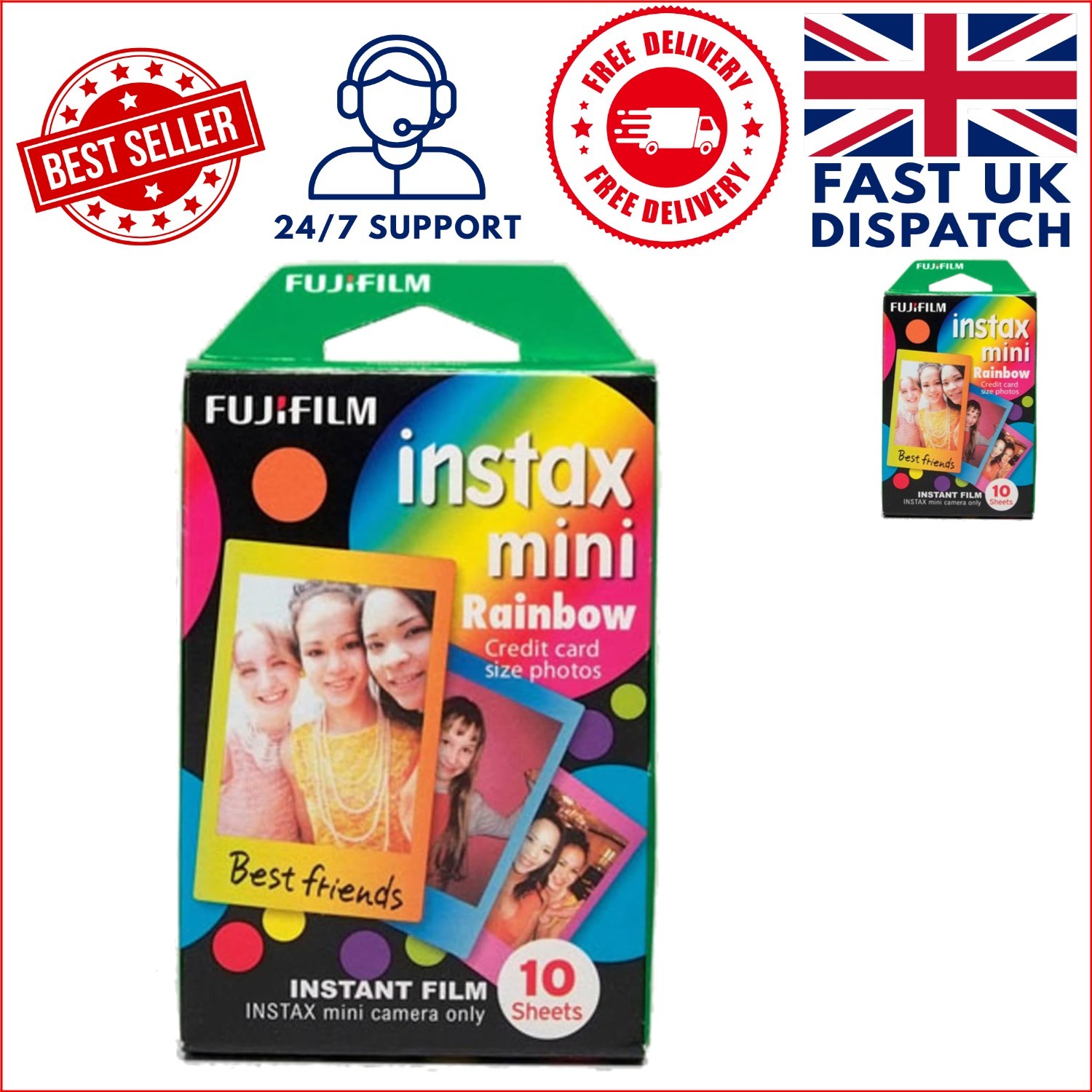 Instax Mini Insant Film, Rainbow Border, 10 Shot Pack, Suitable for All Instax C