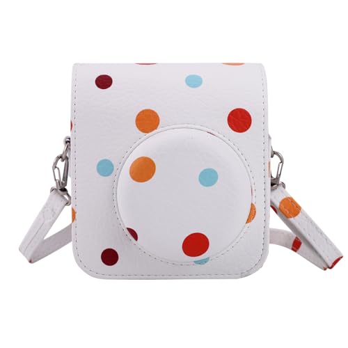 QICNMFA Camera Case Compatible with Fujifilm Instax Mini 12/11 Camera, PU Leather Protective Case with Pocket and Adjustable Shoulder Strap (Polka Dots)