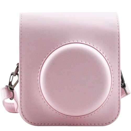 Riosin Instant Mini 12 Protective Case for Fujifilm Instax Mini 12/11 Camera,Premium PU Leather Camera Bag Cover with Pocket and Removable&Adjustable Strap (Blossom Pink)