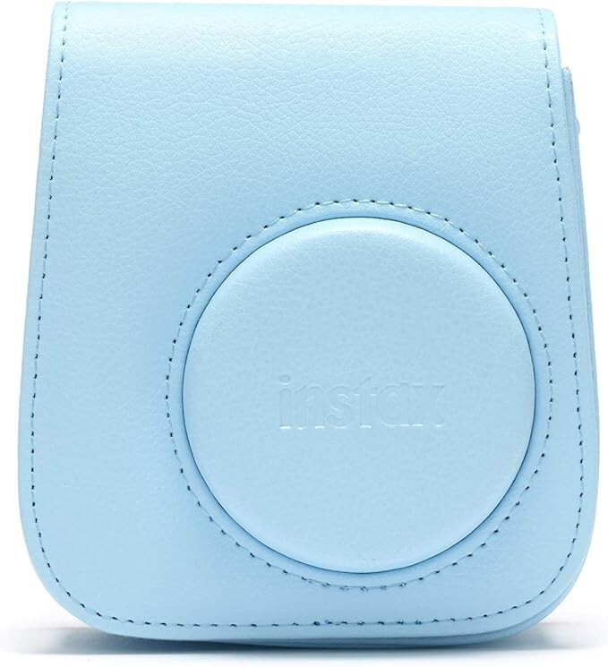 Aenllosi PU Leather Protective Case for Fujifilm Instax Mini 12/11 Instant Film Camera Travel Case,with Pocket and Adjustable Shoulder Strap, Only Case (Pastel Blue)