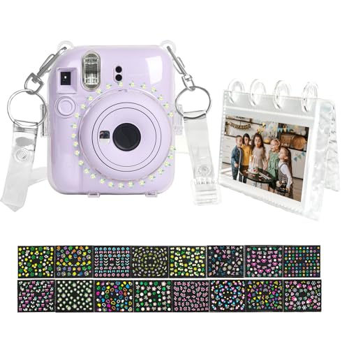 Rieibi Accessories for Fujifilm Instax Mini 12, Gift Bundle Includes Clear Instax Mini 12 Case with Strap, Mini Photo Album, Selfie Mirror, DIY Stickers, Color Filter (No Camera) - Purple
