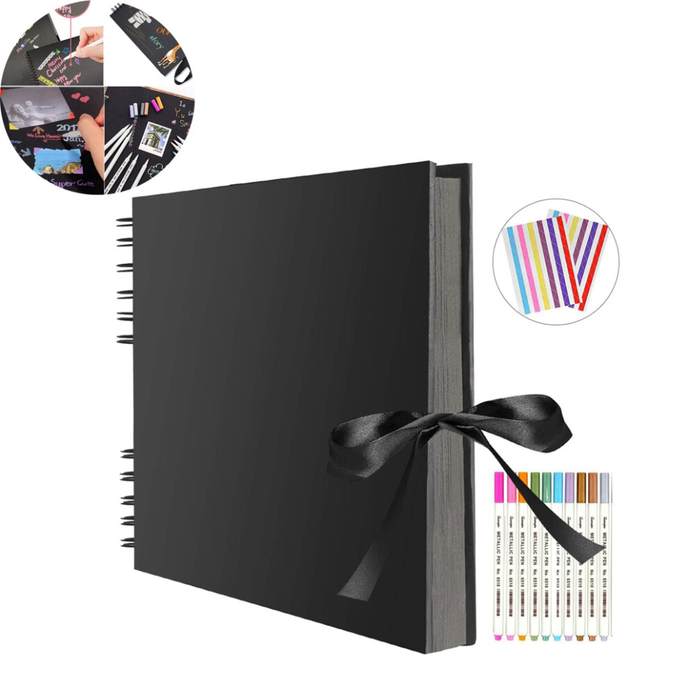 DIY Scrapbooking Kit, Thick Kraft Paper Ideal For Polaroid Instax Mini Photos And Occasions (Black)