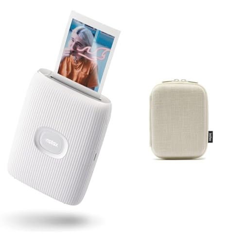 instax mini LINK2 mini film format portable smartphone instant photo printer, multiple templates, Clay White & mini LINK2 printer case, Clay White