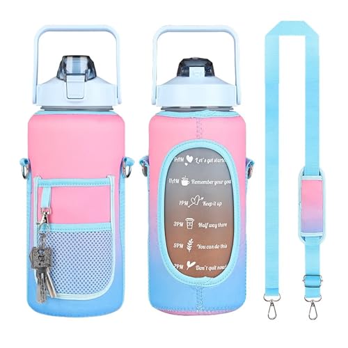 LUYSGBXR Water Bottle Bag 1PC Sport Water Bottle Bag Half Gallon 64 OZ Insulated Mug Holder with Shoulder Strap Phone Pocket for Men Women Jug for Fitness(Pink Blue)