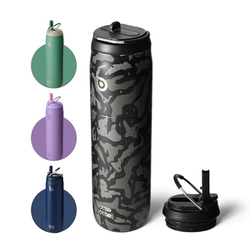 Bottle Bottle Insulated Water Bottle 950ml(32oz) with Straw and Lid for Sports and Gym Stainless Steel Metal Drink Flask for Hot Water with Handle (Black Camouflage)