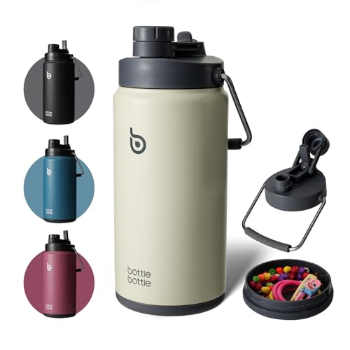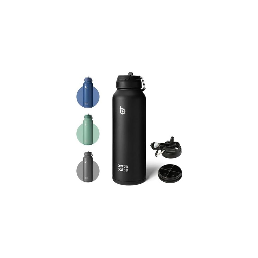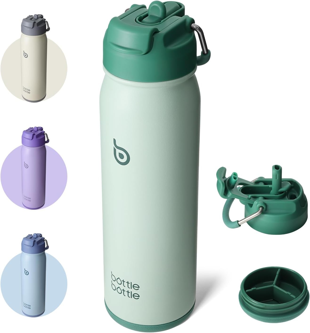 bottlebottle Insulated Water Bottle 950ml(32oz) Stainless Steel Sports Water Bottles with Straw Dual-use Lid Drink Flask Design for Gym with Pill Box (VivaBands)