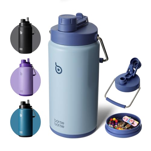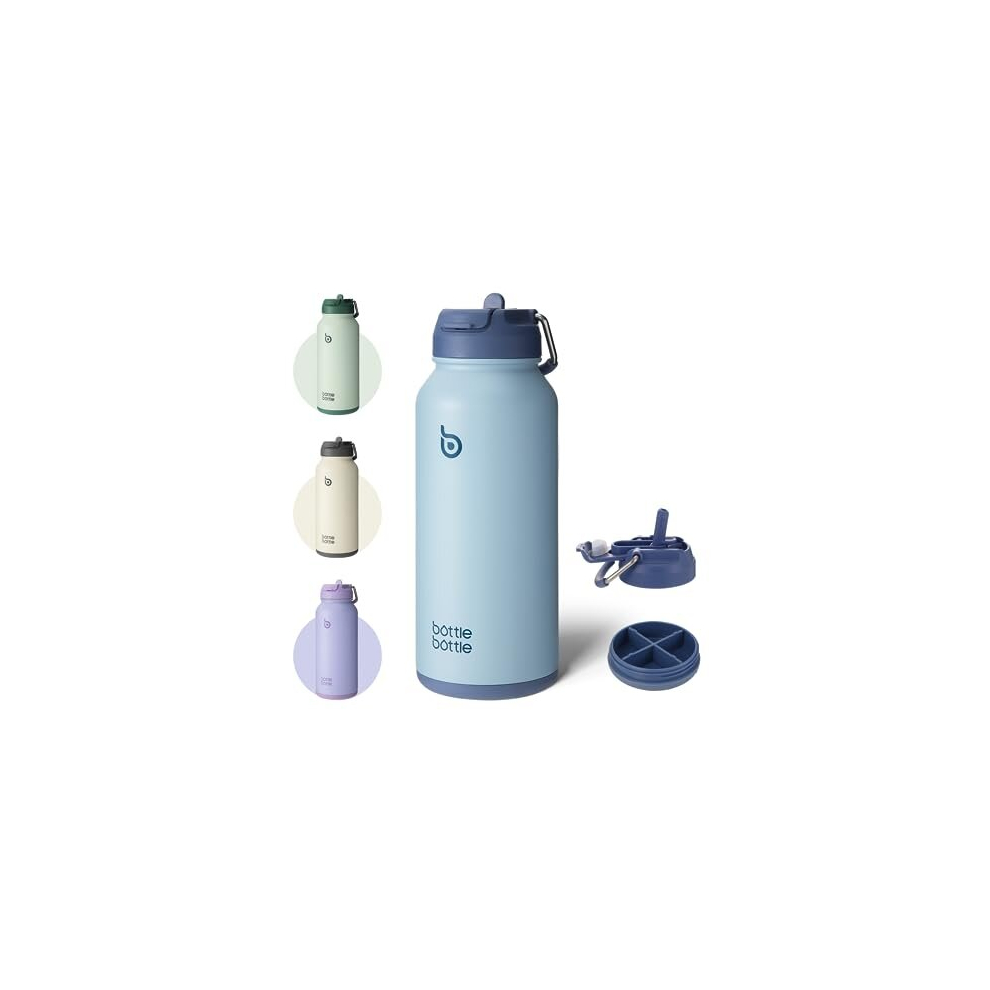 BOTTLE BOTTLE Insulated Water Bottle 950ml(32oz) Stainless Steel Sports Water Bottles with Straw Dual-use Lid Drink Flask Design for Gym with Pill Box (Blue)