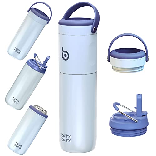BOTTLE BOTTLE Insulated Water Bottle for Sports with Straw,2 lids,18 oz 3IN1 Water Bottles for Slim Can Coolers and Kids Tumbler, Stainless Steel Metal Bottles for Outdoor Activities(Blue)