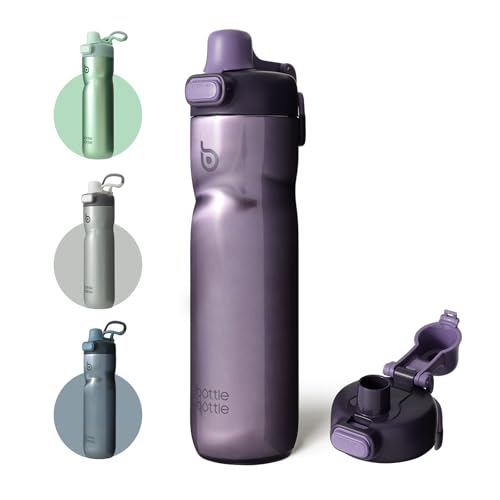 BOTTLE BOTTLE Insulated Water Bottle 24 oz with Handle and Flip Tops Lids Stainless Steel Water Bottle Push Button Lid Leak proof Portable for Running Travel Sports Hiking purple