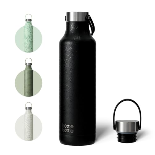 BOTTLE BOTTLE 600ml Insulated Water Bottle with Handle Hiking Drink Flask (Black)