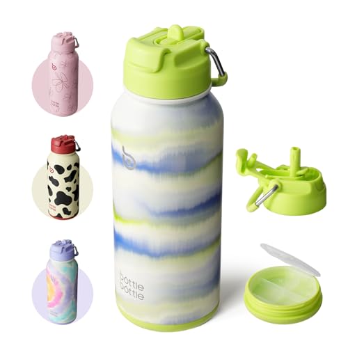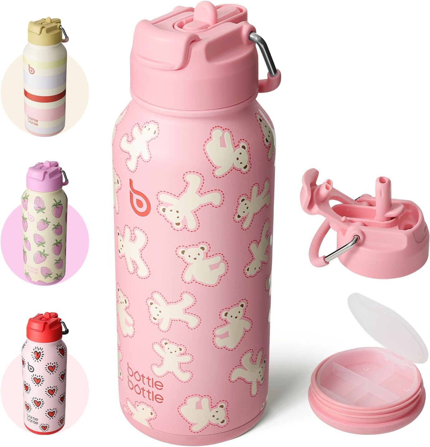 bottlebottle Insulated Water Bottle 950ml(32oz) Stainless Steel Sports Water Bottles with Straw Dual-use Lid Drink Flask Design for Gym with Pill Box (Sweet Oasis)
