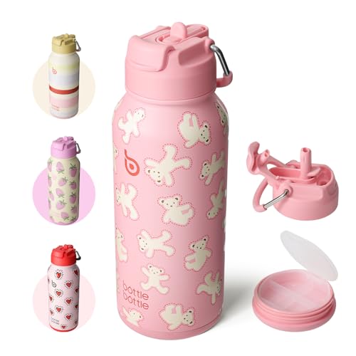 BOTTLE BOTTLE Insulated Water Bottle 950ml(32oz) Stainless Steel Sports Water Bottles with Straw Dual-use Lid Drink Flask Design for Gym with Pill Box (bear cookies)
