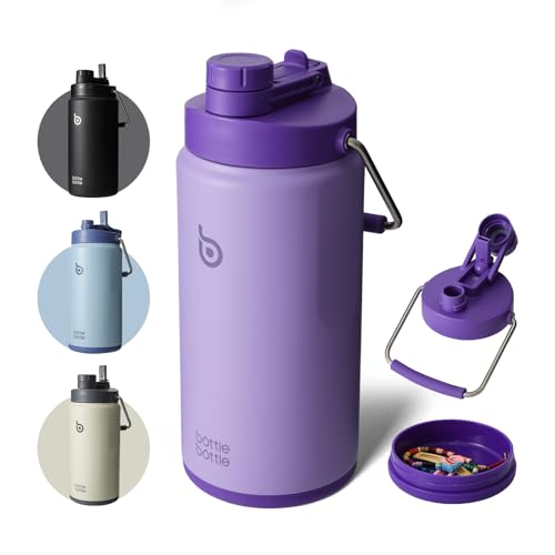 BOTTLE BOTTLE Insulated Water Bottle 950ml(32oz) Stainless Steel Sports Water Bottles with Straw Dual-use Lid Drink Flask Design for Gym with Pill Box (Purple)