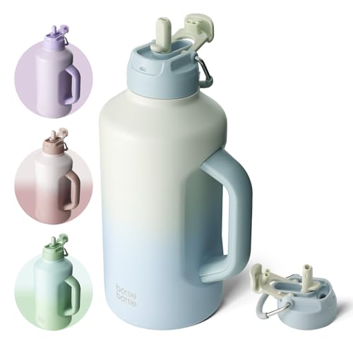 BOTTLE BOTTLE Insulated Water Bottle 64 oz with Straw and Dual-use Lid Sport Stainless Steel Water Bottle with Handle Vacuum Stainless Steel for Workout and Sports(gray blue)