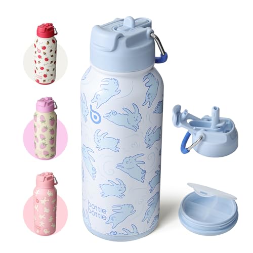 BOTTLE BOTTLE Insulated Water Bottle 950ml(32oz) Stainless Steel Sports Water Bottles with Straw Dual-use Lid Drink Flask Design for Gym with Pill Box (Rabbits)