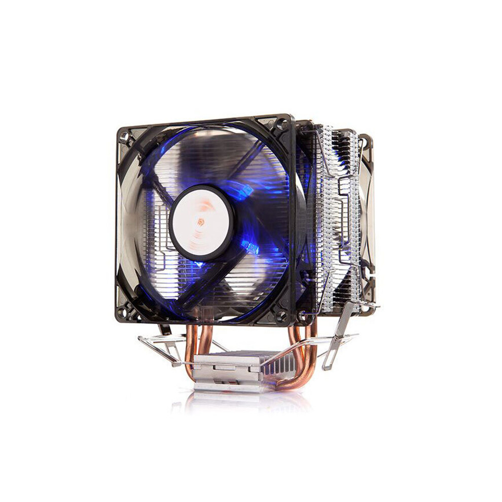 1PCS 90mm Blue LED PWM CPU Cooler CPU Cooling Fan U-shaped Double Heat Pipe Heat Sink with Thermal Silicon Grease for Intel AMD