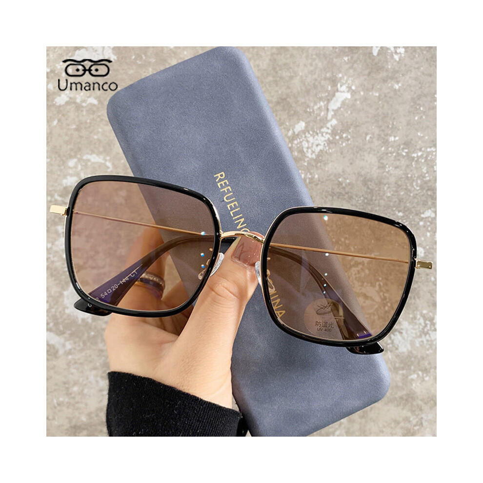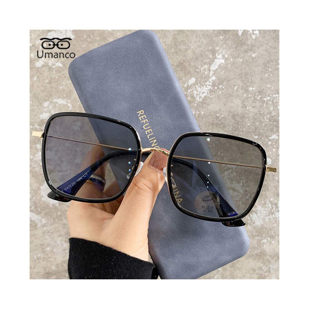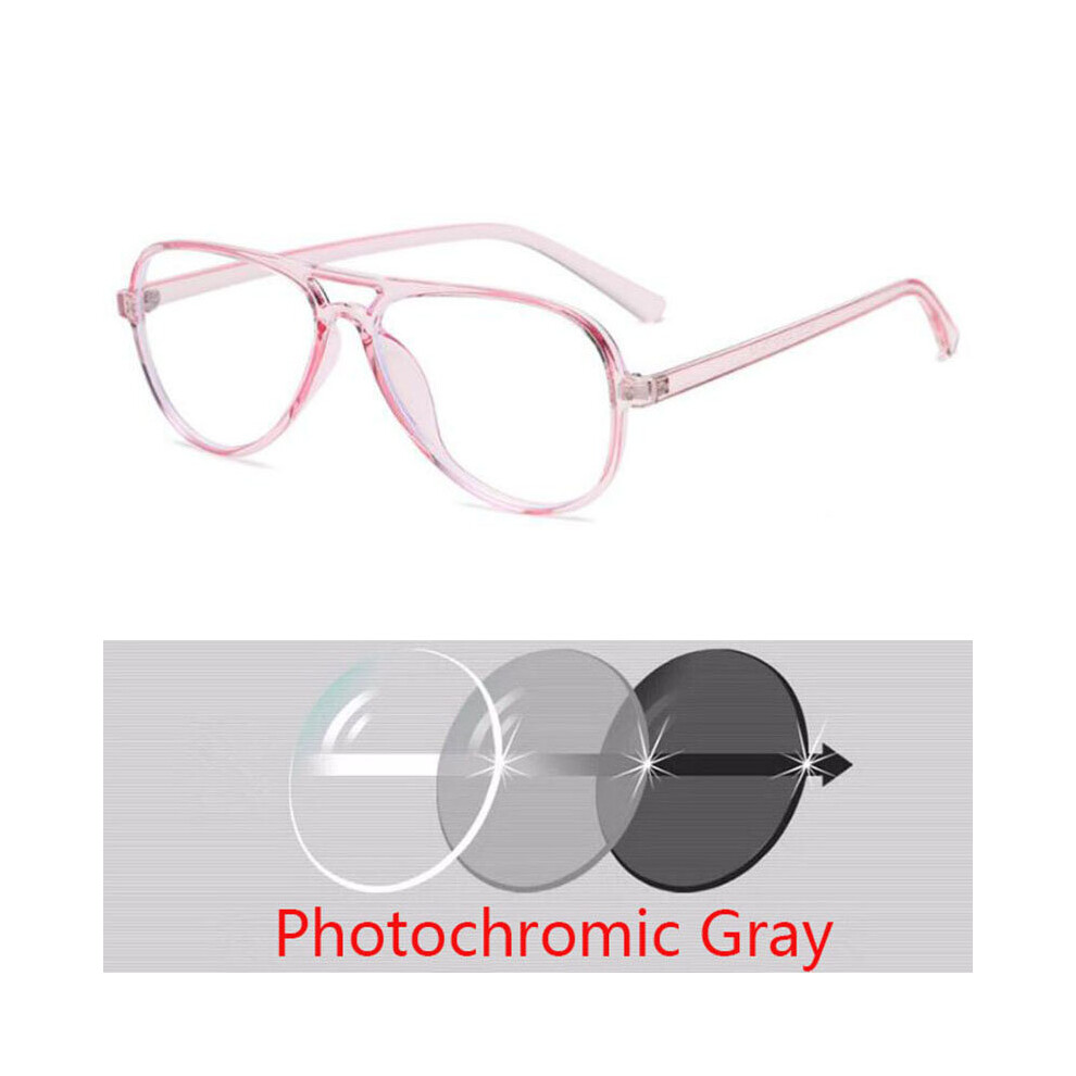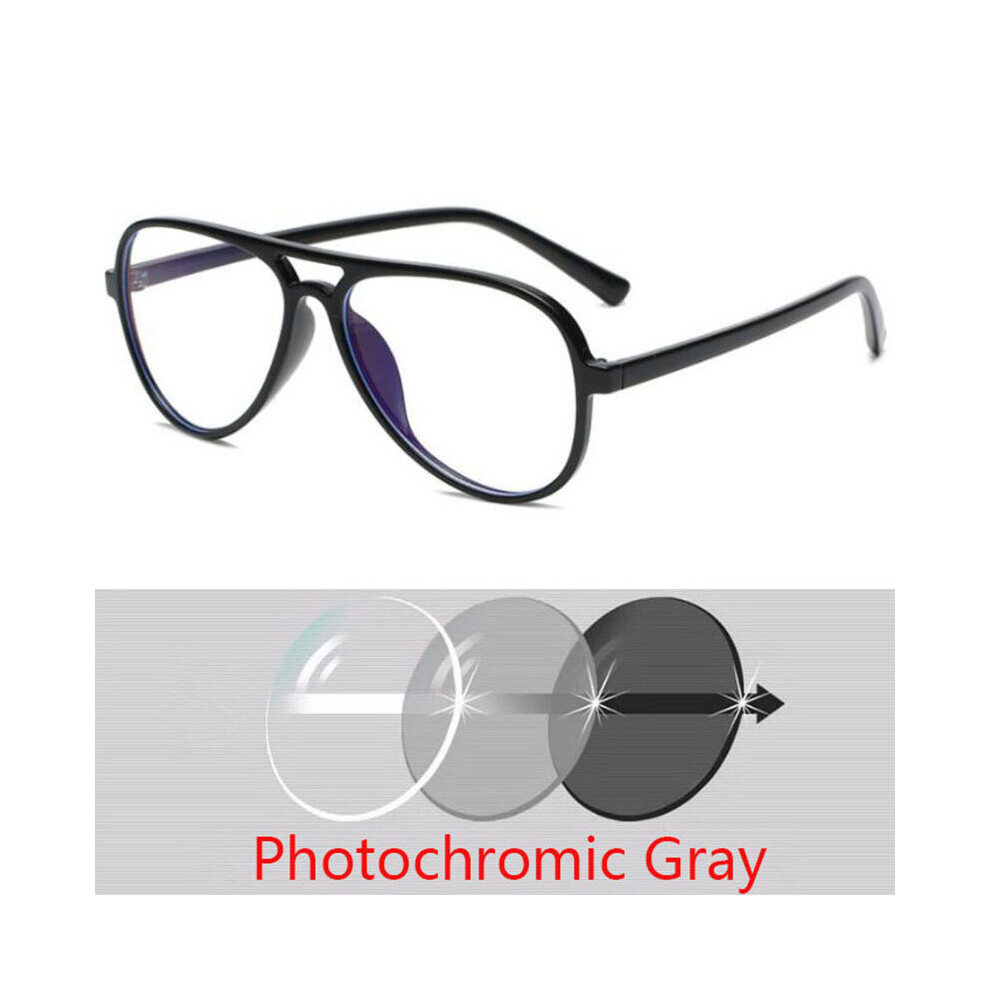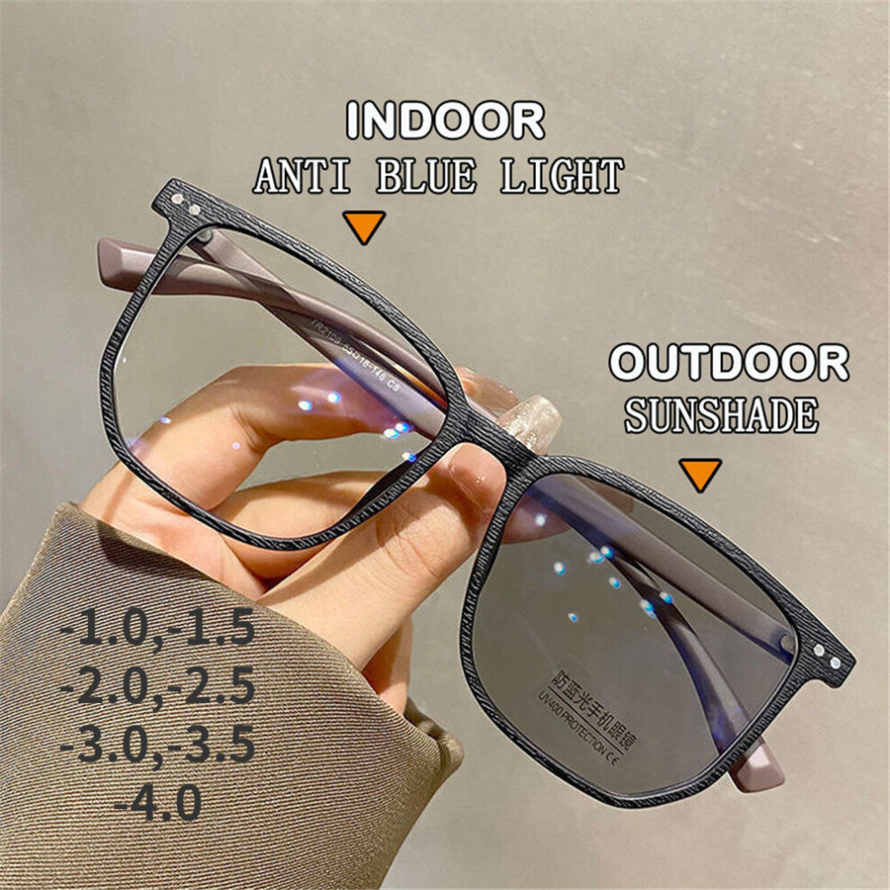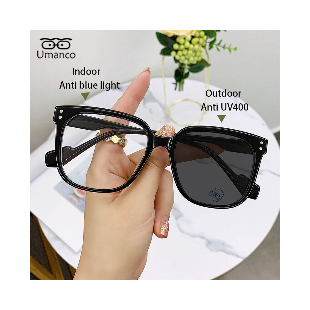 Intelligent Photochromic Myopia Glasses for Women Men Oversized Square Anti Light UV Glasses Finished Prescription Eyewear